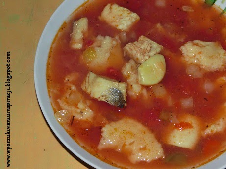 Zupa rybna z harissą i kluseczkami kładzionymi