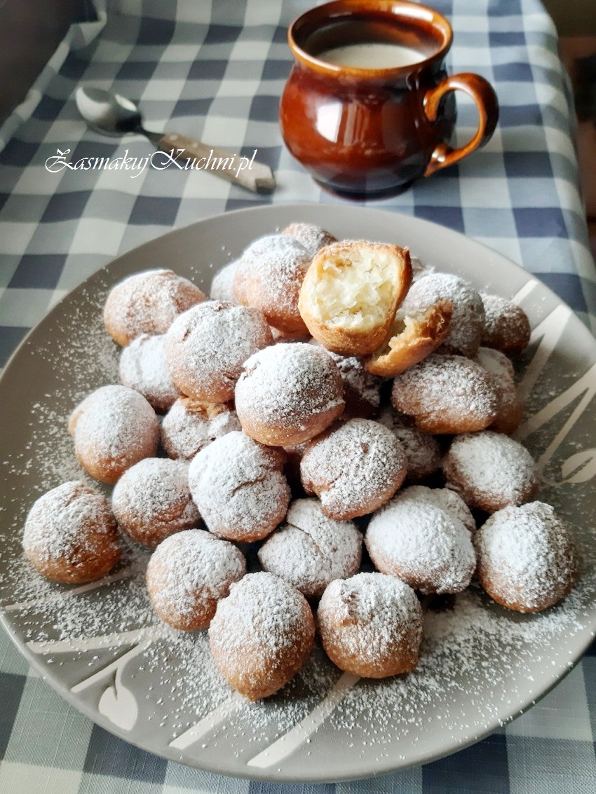 Pyszny domowy mini wypiek, na Tłusty Czwartek jak znalazł! Pączki ptysiowe (z ciasta parzonego) nie zawierają drożdży, zatem nie czekamy na wyrastanie, są małe i dość szybko się smażą, pyszniutkie! Przepis jest na 35-40 mini pączków. Gotowe posypujemy cukrem pudrem, podajemy do kawy, dobrego kakao lub aromatycznej herbaty w