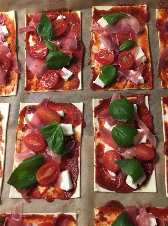 Zapiekanki z ciasta francuskiego w stylu włoskim to prosty i smaczny przepis na szybką kolację bądź przystawkę. Smakują wyśmienicie lekko skropione oliwą z oliwek lub podane z sosem czosnkowym.