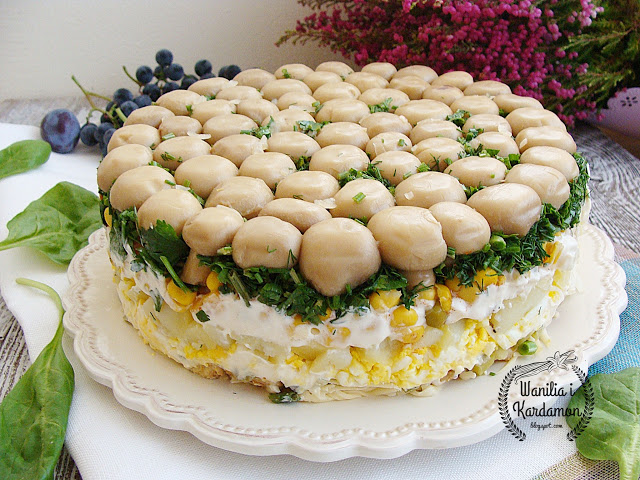 Warstwowa sałatka która efektownie prezentuje się na stole. Przypomina torcik tyle że…