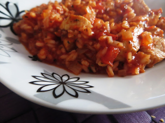 Składniki:100 g ryżu400 g pomidorów krojonych w puszce200 g piersi z indykabazylia,…