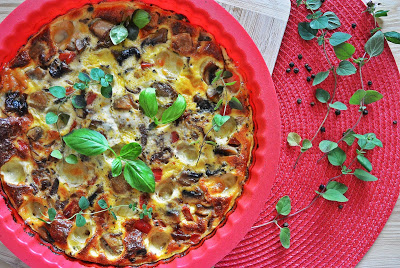 Omlet z pieczarkami i mozzarellą to danie szybkie i łatwe. Oprócz tytułowych składników jest tu także czerwona cebula i papryka oraz przyprawy, które doskonale podkreślają smak potrawy. Pieczony omlet z sprawdzi się na obiad lub kolację. Oto przepis na pyszny omlet z pieczarkami i mozzarellą.