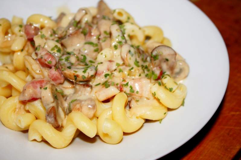 Makaron z pieczarkami i …