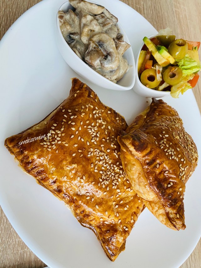 Moja dzisiejsza propozycja na szybki obiad z wykorzystaniem ciasta francuskiego, które tak bardzo ułatwia życie, kiedy nie ma się pomysłu na jakikolwiek posiłek Ja bardzo lubię mięso zapieczone w takim cieście. Podane z ulubionym sosem i jakąś sałatką, to dla mnie zestaw idealny. Spróbujcie