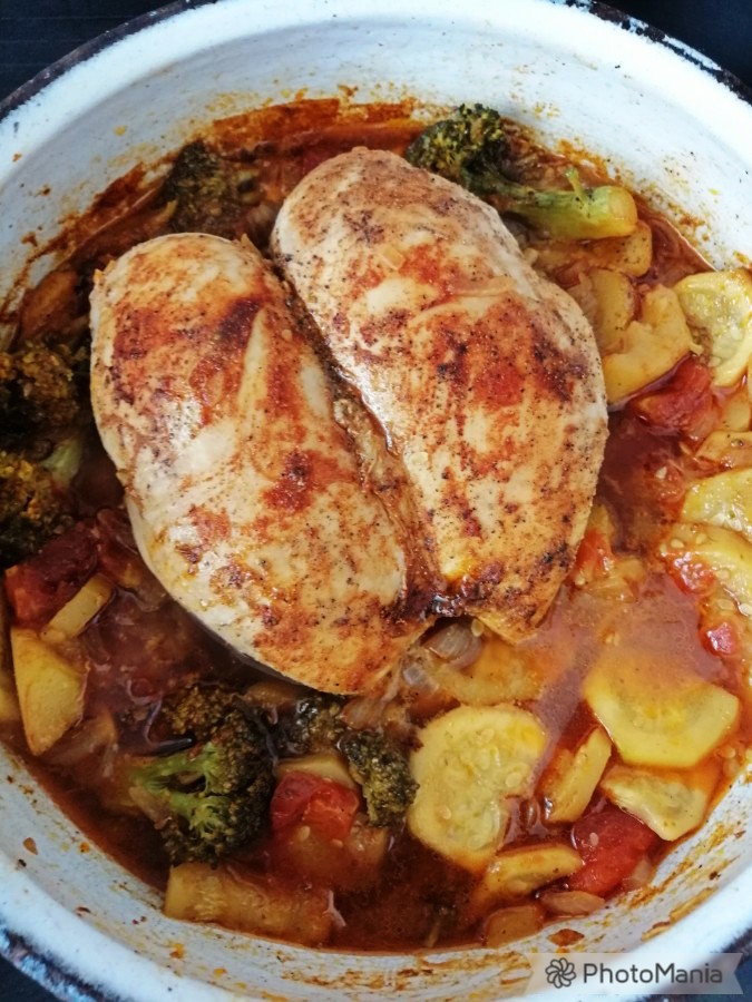 Dziś mam obiadową propozycję, kurczak na warzywach. Danie bardzo proste, z dużą ilością warzyw i smaku w sobie. Do tego naprawdę proste i bez nadmiaru pracy. Dobrze przygotowany kurczak nie jest zły, a wręcz przeciwnie, jest soczysty i pełen smaku. I z pewnością nie jest to nudne danie.