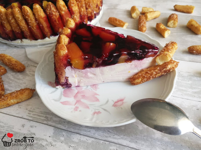 Pyszna, kolorowa, puszysta pianka, owoce, galaretka i słomka ptysiowa. Proste ciasto, które nie wymaga pieczenia, nie licząc czasu tężenia galaretek to jest szybkie w przygotowaniu. Takiemu przysmakowi nie oprze się żaden łasuch, ani duży, ani mały 😉