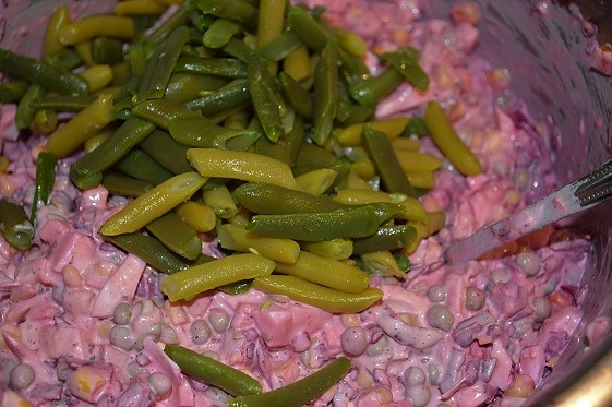 Sałatka z fasolą szparagową i buraczkami.