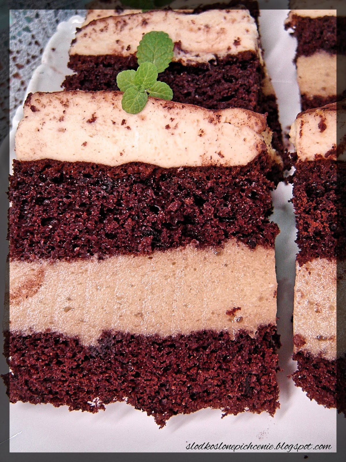 Pyszne, warstwowe ciasto składające się z czekoladowego biszkoptu i dwóch świetnie się ze sobą komponujących mas: bananowej i śmietanowej z masłem orzechowym. 🙂