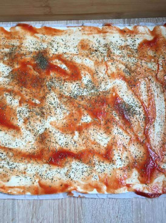 1 rulon ciasta francuskiegosos pomidorowy lub ketchup do posmarowania ciastaok