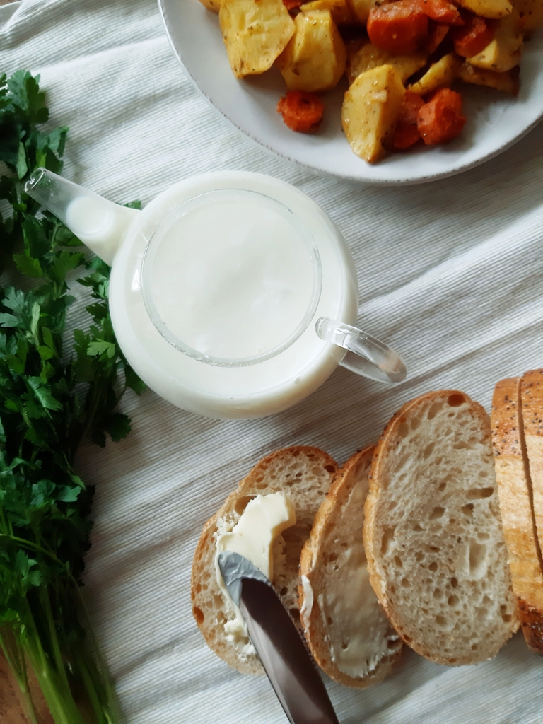 Dziś absolutny powrót do dzieciństwa, czyli domowe zsiadłe mleko, najlepsze i prawdziwe ze świeżego mleka. Wspaniałe w smaku. Do pajdy chleba, ziemniaków smażonych z cebulą, pieczonych lub wybranych dań obiadowych. Obecnie, zsiadłe mleko można przygotować także z mleka pasteryzowanego (np. dodać do niego niewielką ilość kefiru), choć ja podchodzę do