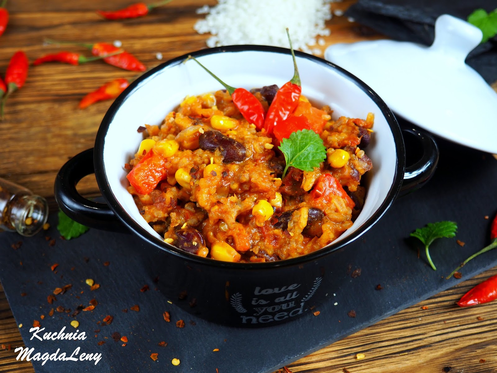 Kociołek meksykański to jednogarnkowe chili con carne z ryżem. Danie składa się z mielonej wołowiny oraz czerwonej cebuli, świeżej papryki, pomidorów, czerwonej fasoli i kukurydzy, a także ryżu. Ryż gotowany jest razem z pozostałymi składnikami, dzięki temu nie trzeba brudzić dodatkowego garnka. Całość dopełniają przyprawy, dzięki którym potrawa zawdzięcza swój