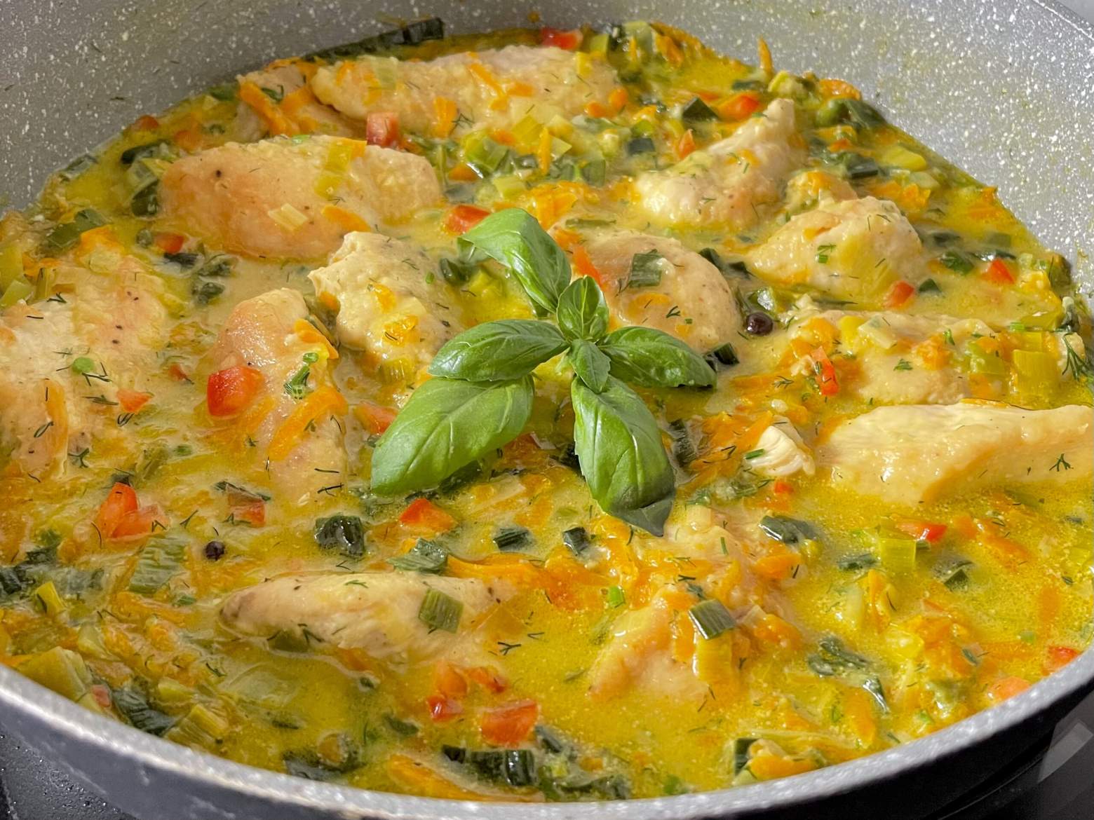Fileciki w kremowym sosie porowo-śmietankowym Pyszny, delikatny kurczak duszony w aromatycznym, kremowym…