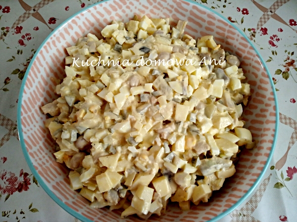 Wszystkie składniki dowolnie pokroić, dodać majonez