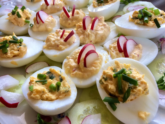 Jaja faszerowane rzodkiewką i zielonym ogórkiem