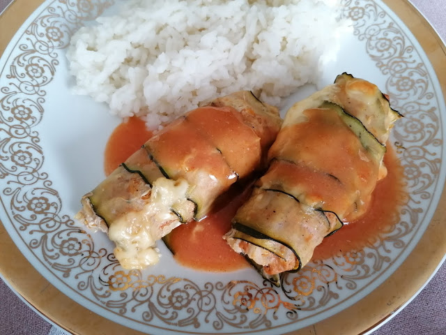 Uwielbiam tradycyjne gołąbki – mięso i ryż zawinięte w kapustę, a do tego sos pomidorowy. Mogłabym je jeść na okrągło! Jednak ich przygotowanie zajmuje bardzo dużo czasu. Aby go zaoszczędzić i nie męczyć się z gotowaniem kapusty, postanowiłam zawinąć mięso w plastry cukinii. Farsz mięsny też doprawiłam