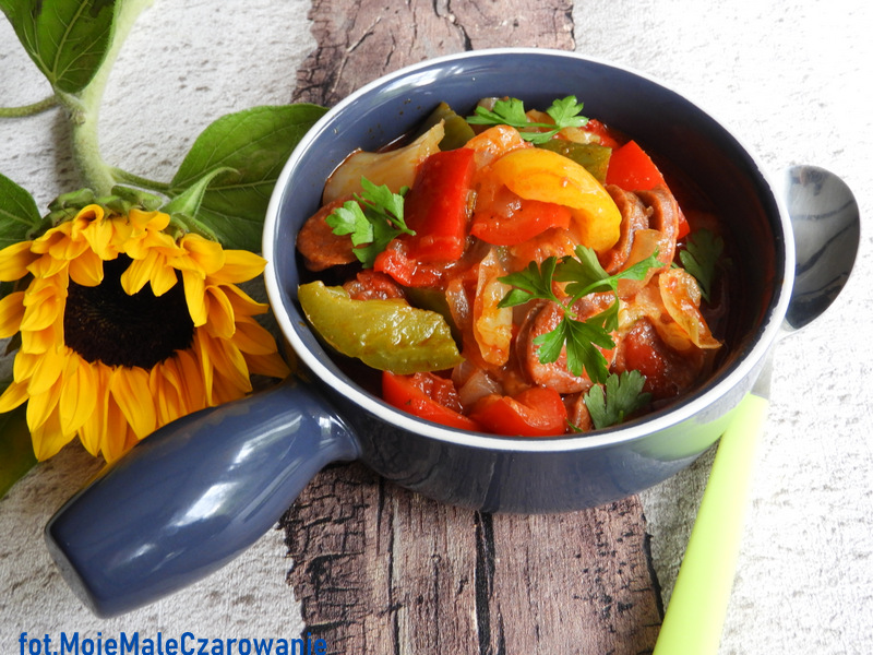 W moim dzisiejszym leczo jest dużo papryki, chorizo i pomidory z puszki, w efekcie