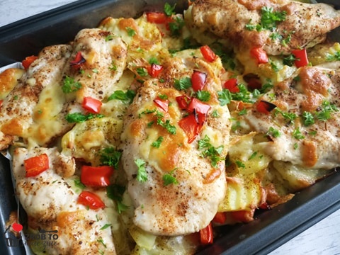 Jeśli nie macie zbyt wiele czasu na przygotowanie obiadu to polecam Wam ten przepis. Wystarczy wszystko ułożyć na blachę lub naczynie do zapiekania, włożyć do piekarnika i gotowe. Pyszna pierś z kurczaka zapiekana z ziemniakami i papryką w to wszystko zasypane żółtym serem. Szybko i smacznie.