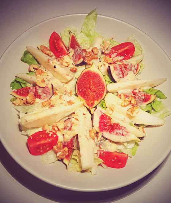Sałata z gruszek i fig z sosem z sera pleśniowego połączona z…