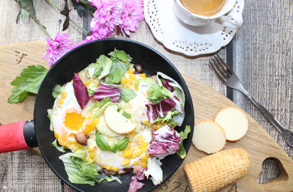 Bałagan z oscypkiem – danie z patelni Uwielbiam takie dania. Proste, szybkie, gotowe w kilka chwil. Tzw. bałagan, to nic innego jak danie przygotowane z dostępnym składników. Najczęściej przygotowuję bałagan z pomidorami, czyli popularną szakszuke. Tym razem jednak postawiłam na inne dodatki i dużo kolorów. No i górki