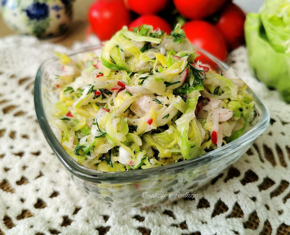 Surówka z młodej kapusty i rzodkiewki to obowiązkowy dodatek do obiadu w sezonie na nowalijki. Młoda kapusta jest bardzo wdzięcznym składnikiem do tego typu surówek. Jest delikatna, umiarkowanie słodka i pasuje do większości dań obiadowych. Ja osobiście zakochałam się w takiej surówce. Można przygotować ją na wiele sposobów, tu opisałam