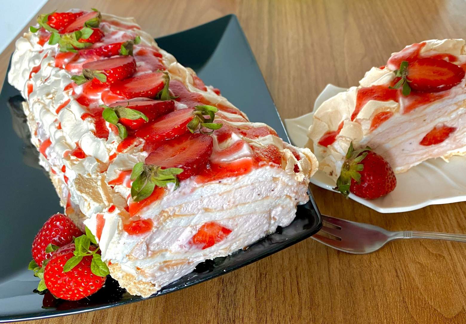Truskawkowa rolada bezowa
