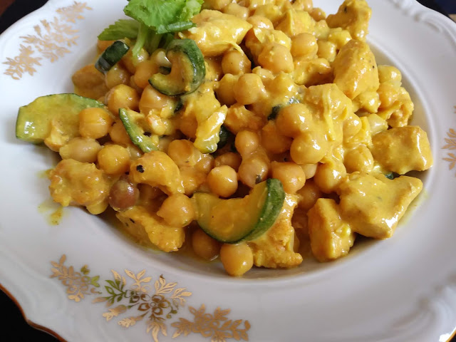 Indyk z ciecierzycą i cukinią w mleku kokosowym to