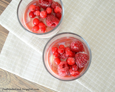 Owocowy pudding, to świetny pomysł na pyszny i zdrowy deser. Ten jest z sezonowych truskawek, podany z czerwonymi porzeczkami i malinami, które miałam w zapasie.