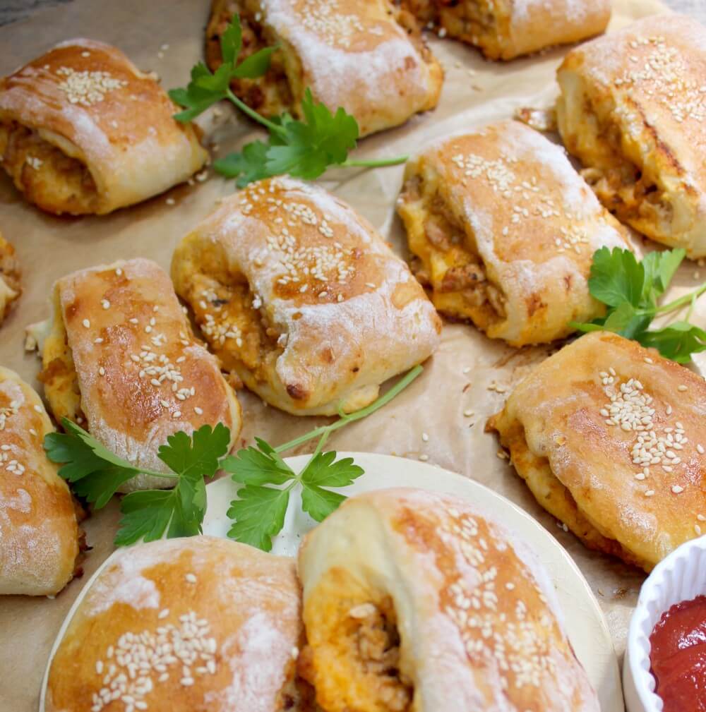 Paszteciki z farszem a la bolognese Dziś mam dla Was przepis, który sprawdzi się zarówno na przyjęciach lub spotkaniach z przyjaciółmi, jak i na pyszny domowy obiad. Paszteciki z farszem a la bolognese, to nic innego jak drożdżowe paszteciki nadziane mięsem mielonym z dodatkiem sosu bolońskiego, odrobiny