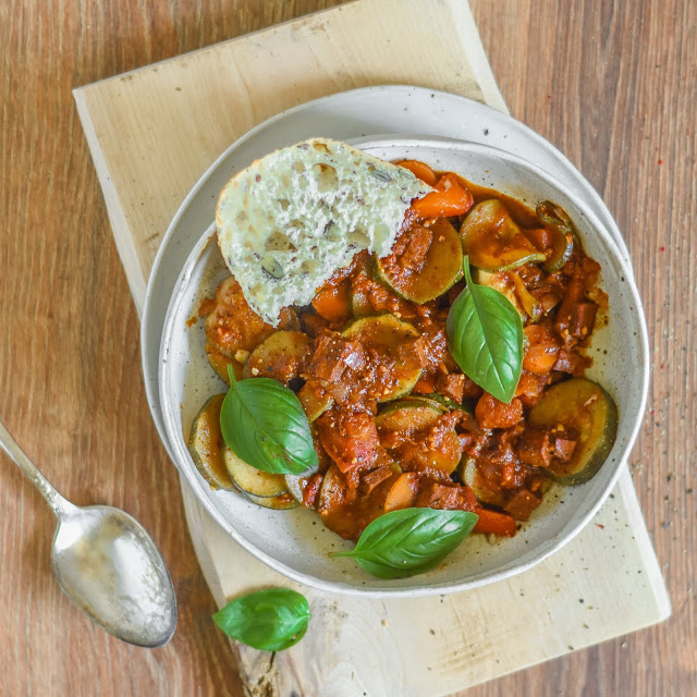 Leczo z cukinią i tofu 🍲 czyli must have sezonu cukiniowego 💚 i bardzo zdrowy pomysł na obiad 🤤 z dużą ilością warzyw, bez mięsa i z małą ilością kalorii za to z wieloma składnikami odżywczymi. Jeść – nie umierać 🙂