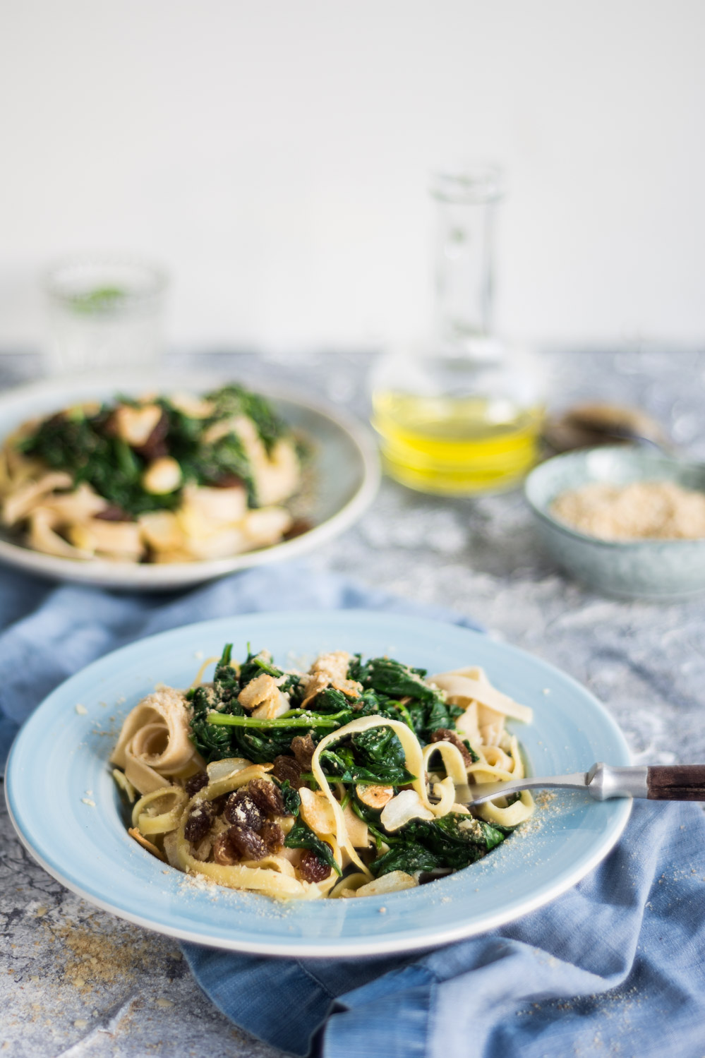 Tagliatelle ze szpinakiem – to bardzo banalny przepis, ale dodatek rodzynek czyni…