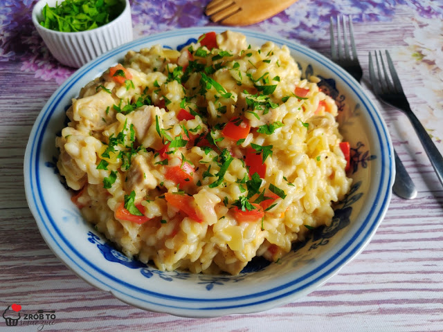 Jeśli masz ochotę na pyszne danie z ryżem i kurczakiem to przychodzę z przepisem na risotto z aromatyczną piersią kurczaka, cebulą i papryką. W przygotowaniu risotto plusem jest to, że można tu dodać wszystko to, na co tylko mamy ochotę- pieczarki, brokuły, groszek, kukurydza i wiele innych. Przygotowanie risotto jest