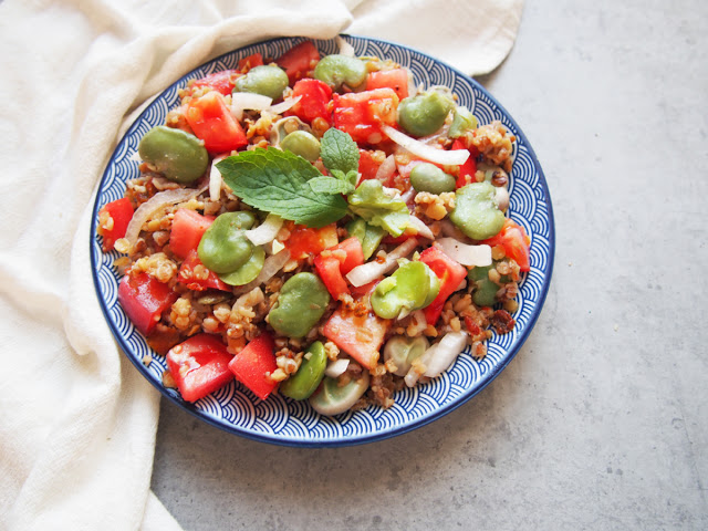 Wczoraj wybrałam się na mój ulubiony targ, a tam same pyszności dorodne pomidory, ogórki, fasolka szparagowa, piękne kalafiory, soczyste czereśnie, morele, maliny i ostatnie truskawki, a wśród tych pyszności mój ulubiony bób. Jak zwykle z trudem powstrzymałam się by nie zjeść całego woreczka po ugotowaniu i postanowiłam
