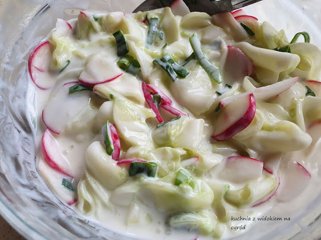 Mizeria. Bardzo prosty w wykonaniu i smaczny dodatek do obiadu. Dostęp do ogórków mamy przez cały czas, niezależnie od pory roku. Jednak mizeria najlepiej smakuje w tak zwanym „sezonie ogórkowym” kiedy to ogórki są najbardziej pachnące i jędrne. A już z własnego ogródka, to czysta poezja. Ja mam to