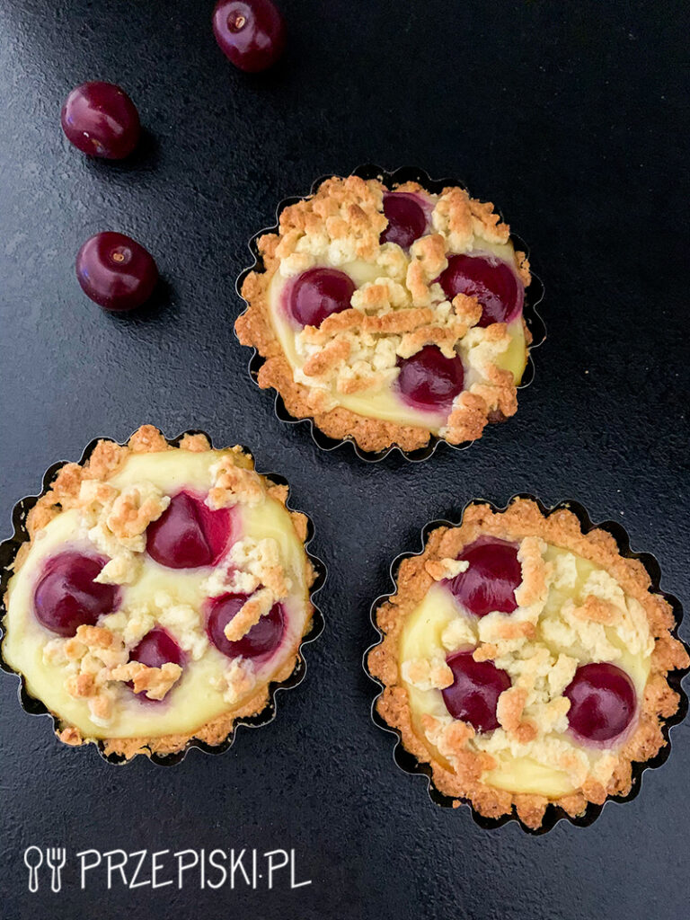 Mini tarta z budyniem i wiśniami to idealny pomysł na deser dla dzieci, jak i dorosłych. Najlepiej smakują jeszcze ciepłe,