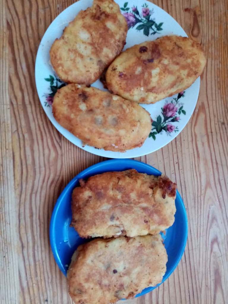 Dawno nie jadłam takiego obiadku wiec dla urozmaicenia nadzienie powstało z tego co miałam w domu .A wystarczyło usmażone pieczarki ,starty żółty ser ,pokrojona wędlina lub kiełbasa .Wszystko razem wymieszać .