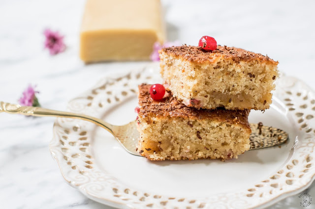 Ciasto wychodzi słodziutkie więc jest idealne do kawy lub gdy mamy napad słodkiego, ale żeby nie było za słodko to co jakiś czas pojawia się nuta kwaskowatości w postaci czerwonej porzeczki ;)……. i uwaga to na dole to nie jest zakalec, jest to marcepan który opadł na dno ciasta.