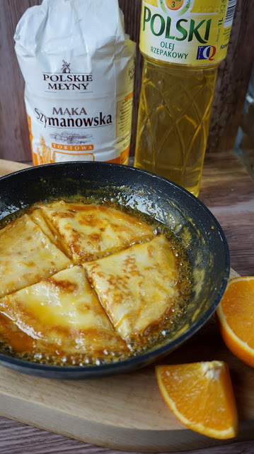 Aromatyczne, słodziutkie naleśniki w pomarańczowym syropie maślano-karmelowym. Doskonałe jako deser na ciepło…