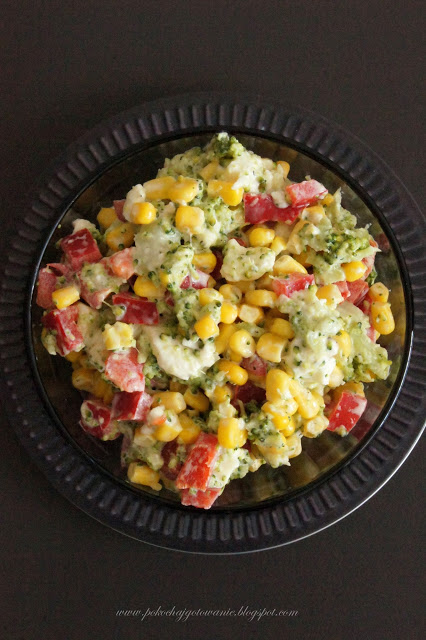 Składniki:– 1 mały brokuł– 1 mała czerwona papryka– 1 kulka mozzarelli– 1/2…