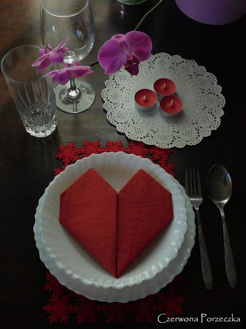 Walentynkowe nakrycie stołu i serwetka w kształcie serca