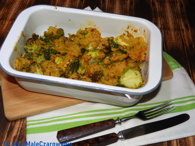 Tutaj brokuły są chrupiące dzięki bułce tartej.