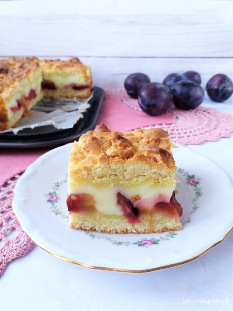 Ciasto ze śliwkami i budyniem