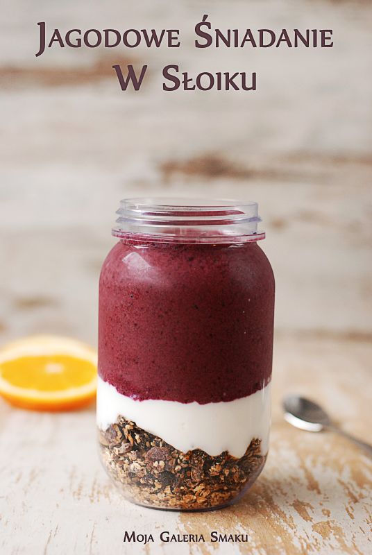 Składniki na 2 porcje:6 łyżek granoli2 jogurty naturalne120 g mrożonych jagód1 pomarańcza1…