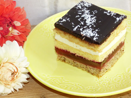 Super ciacho z książki Siostry Anastazji. W książce podane były wiśnie z kompotu, których niestety nie miałam, więc zastąpiłam je czereśniami. Ciasto bardzo ładnie się prezentuje, więc na pewno się sprawdzi na różnego rodzaju imprezach okolicznościowych. Zapraszam kochani.