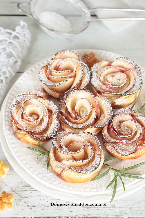 Jabłka myjemy, przekrawamy na pół. usuwamy gniazda nasienne, kroimy w cienkie półplasterki, umieszczamy w rondelku, skrapiamy sokiem z cytryny i zalewamy wodą (wody wlewamy tyle aby przykryła plasterki jabłka). Gotujemy chwilkę aby tylko pasterki zmiękły, następnie