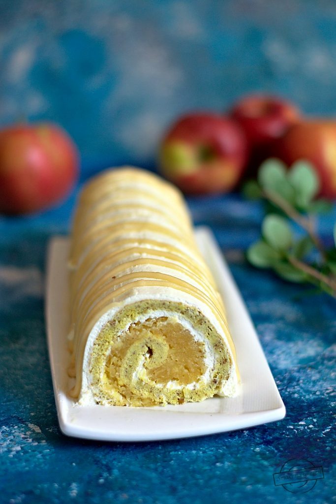 Tym razem zrobiłam roladę z masą jabłeczną. Tym co urzekło mnie najmocniej było samo ciasto – pyszne, wilgotne i takie inne.