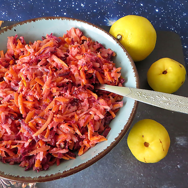 Surówka z kolorowej marchewki, jabłka i pigwowca. Często mam pytania jak wykorzystać pigwowca, stąd mój przepis na tę surówkę. Pyszna , chrupiąca i soczysta, idealna na poprawę cery.