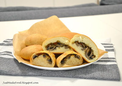 Pyszne, mięciutkie bułeczki, nadziane farszem pieczarkowym. Bułeczki są w wersji pszennej klasycznej i pełnoziarnistej. Dla mnie zwykłe wygrywają, ale pełnoziarniste są zdrowsze i również smaczne. Polecam od czasu do czasu taką zamianę. Bułeczki są pyszne zarówno po upieczeniu, jak i następnego dnia, więc polecam na wynos do