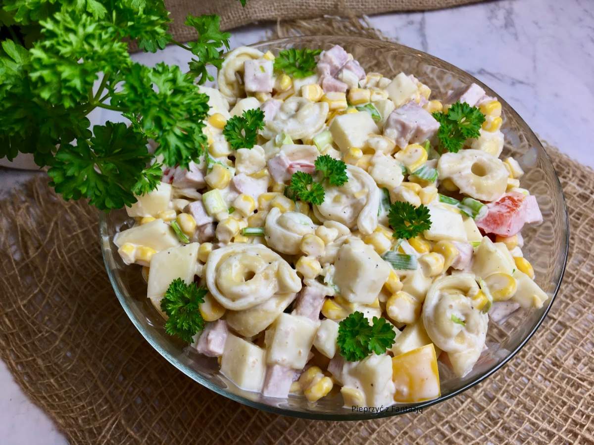 Sałatka z tortellini, szynką i szczypiorkiem