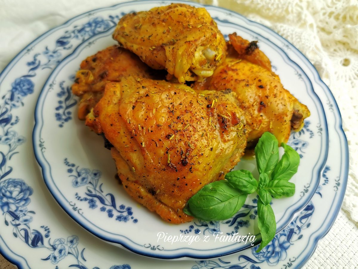 Bardzo smaczna i prosta do zrobienia marynata do kurczaka. Można w niej marynować dowolne porcje drobiu. Miałam akurat udźce z kurczaka, więc takich użyłam do pieczenia. Dobrze, by mięso poleżakowało dłuższy czas w marynacie, zdąży wychwycić smaki i aromaty przypraw. Nie są to przyprawy wyszukane, ale w prostocie tkwi smak.
