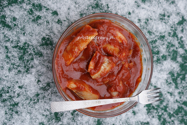 Śledzie w przecierze pomidorowym z pieczarkami marynowanymi